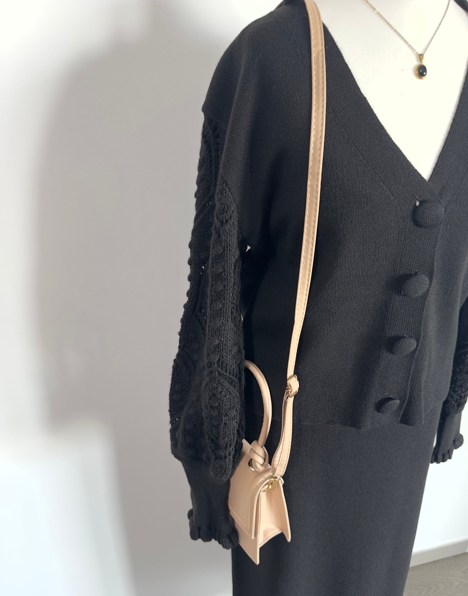 Succombez au charme intemporel de cet ensemble en maille noir, à la fois raffiné et confortable. Composé d’un cardigan à col V et d’une jupe longue assortie, il incarne une élégance douce et naturelle, idéale pour la mi-saison comme pour les journées plus fraîches.