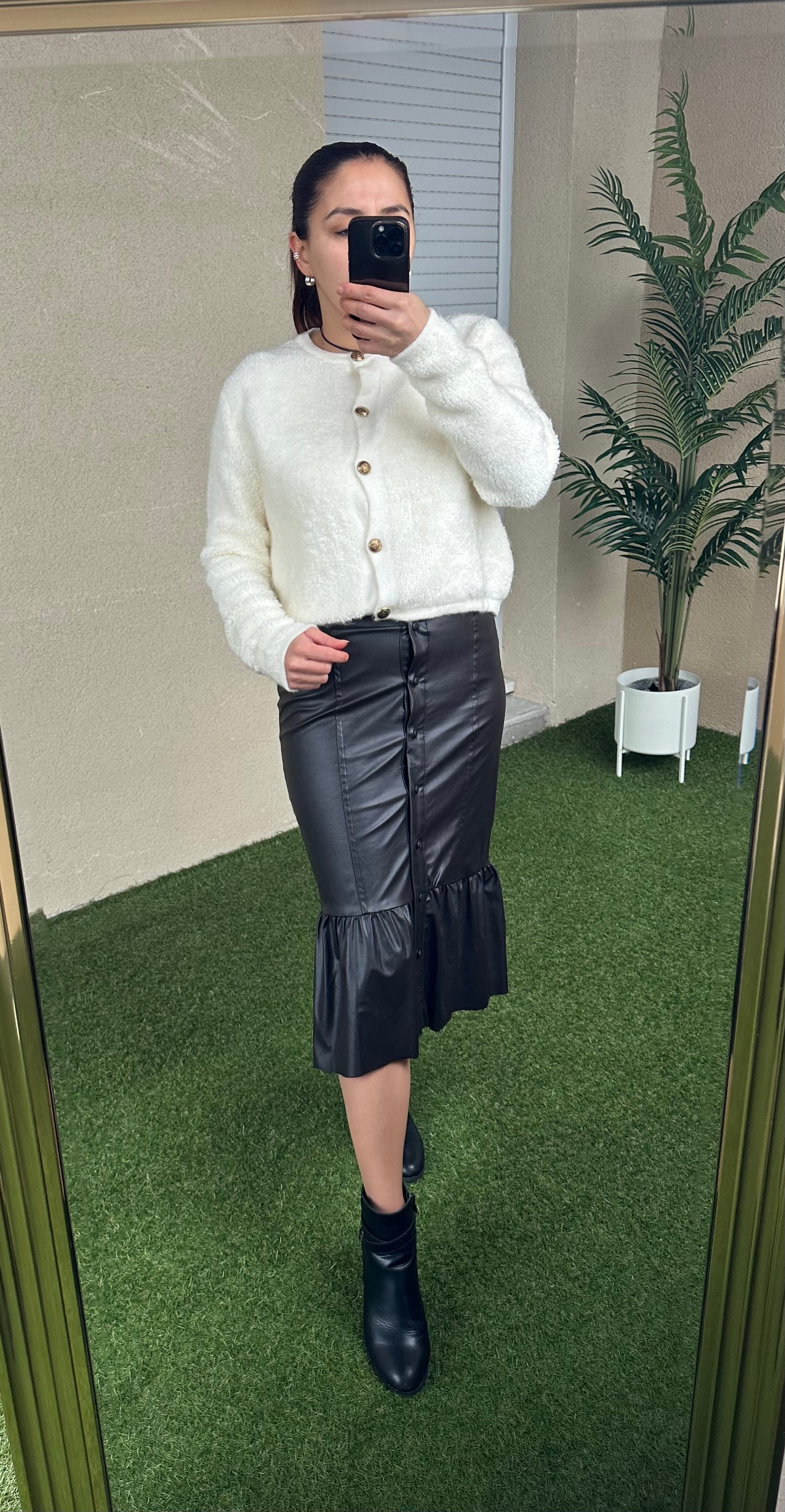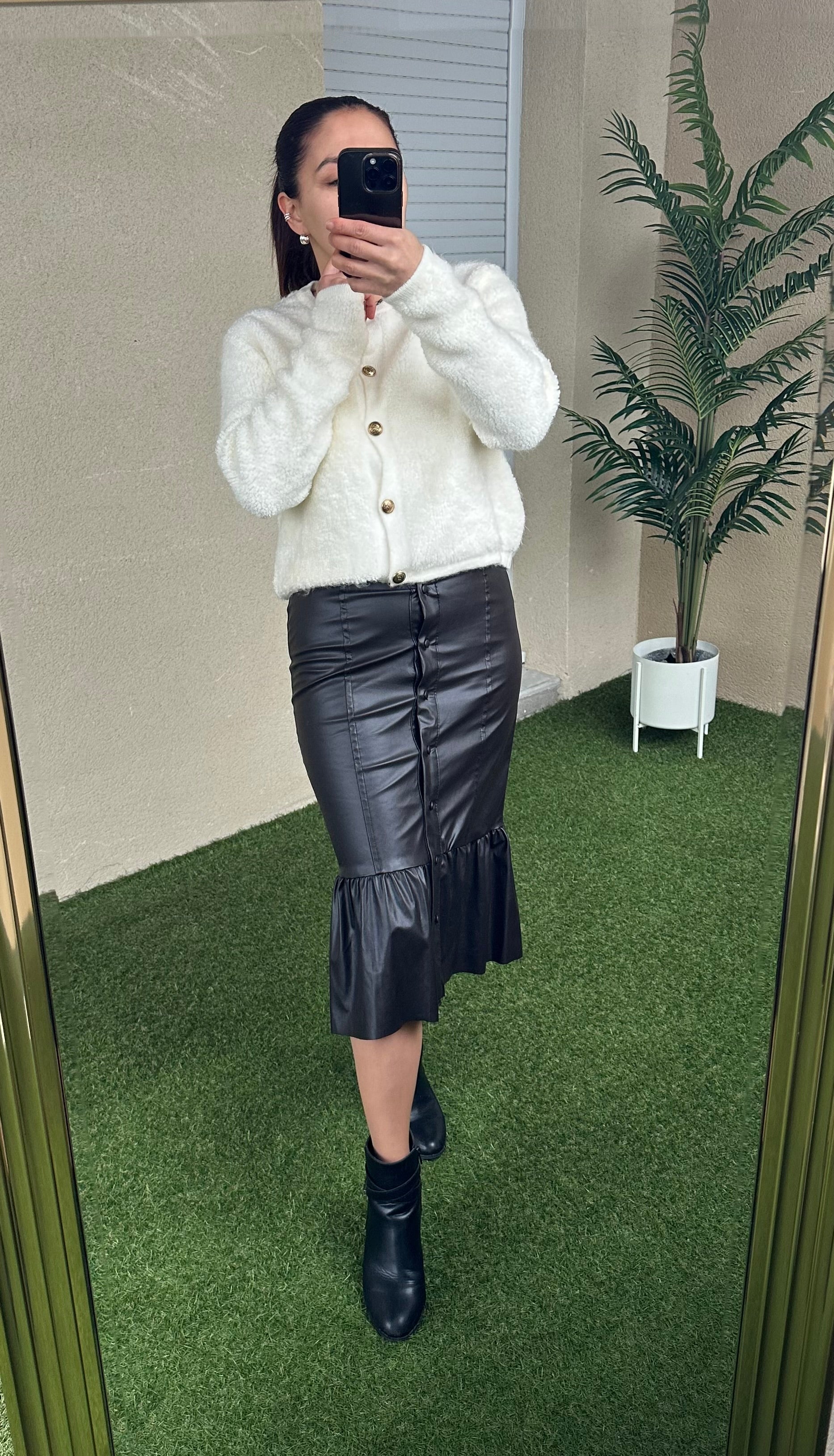 jupe simili cuir boutonnée à l’avant